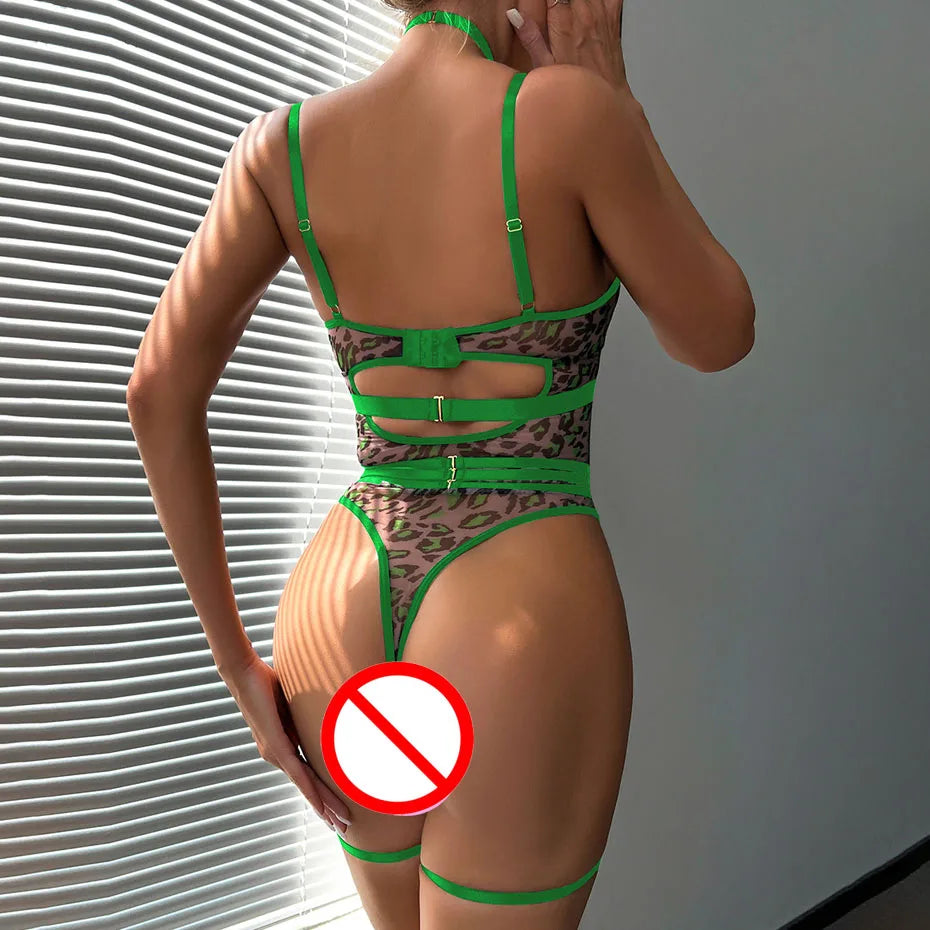 Leopard Lace Bodysuit Alluring Open Crotch Teddy For Women
